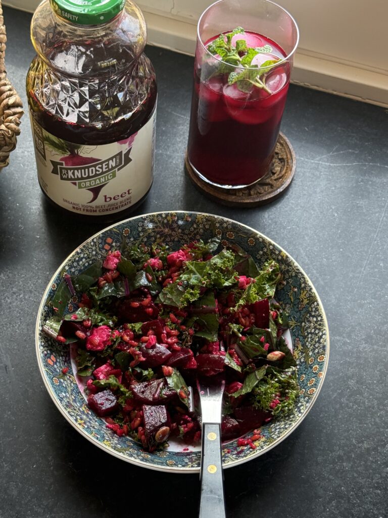 Beet & Kale Farro Salad with Beet Juice Dressing